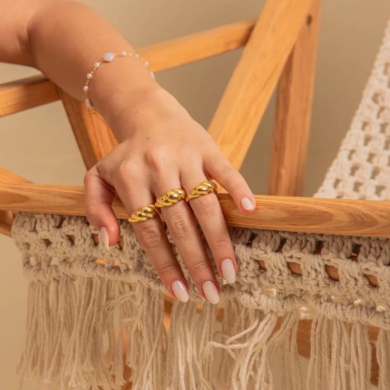 ANEL CROISSANT 10MM BANHADO A OURO 18K