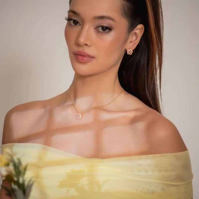 CONJUNTO FLORECER ROSA BANHADO A OURO 18K