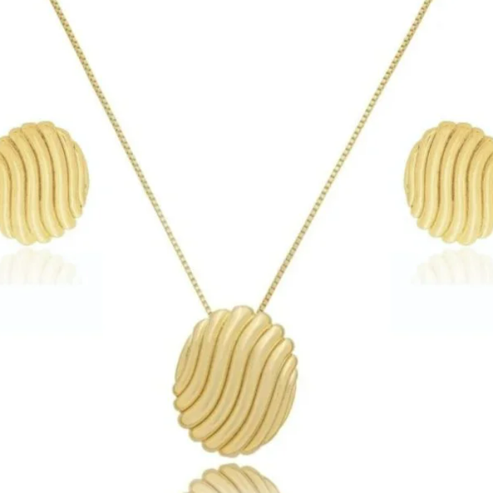 CORDÃO OVAL ONDAS SIMÉTRICAS BANHADA A OURO 18K
